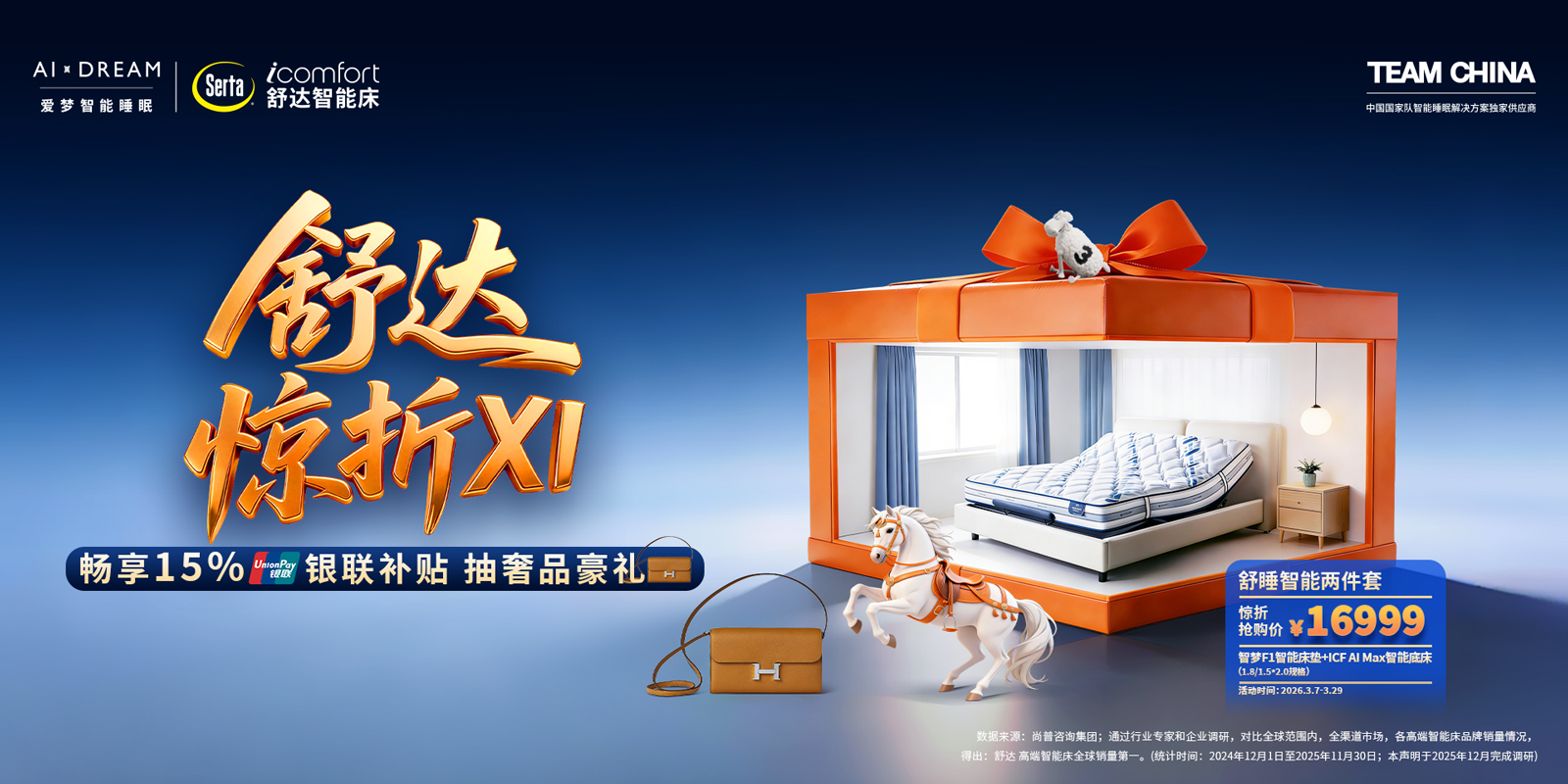 舒达以iComfort智能睡眠引领行业发展,舒达所属爱梦集团为TEAM CHINA中国国家队智能睡眠解决方案独家供应商。舒达拥有多项专利技术及多款业内领先的智能产品,聚焦“难睡着、难睡稳、难睡透”三大睡眠问题,守护全周期好睡眠。