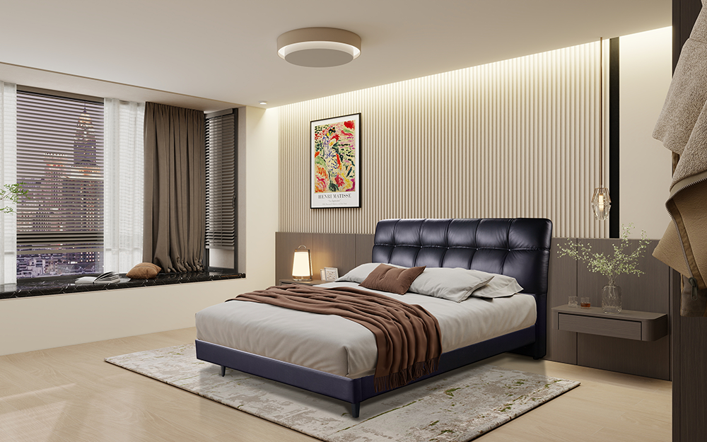 天然皮革呈现自然纹理,沉淀着时光赋予的岁月温度。传承古典匠心的拉扣工艺,以大块菱格固定高密度海绵,温柔承托每一个慵懒姿势。深陷温柔,撑起精致,于现代生活重译奢居体验。