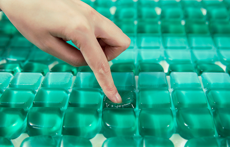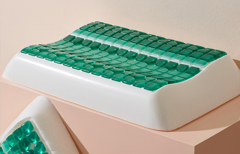 翡翠色高能凝胶,凝胶颗粒高度可达2cm,如“婴儿”般肌肤水嫩柔软。柔韧支撑,贴合肩颈。