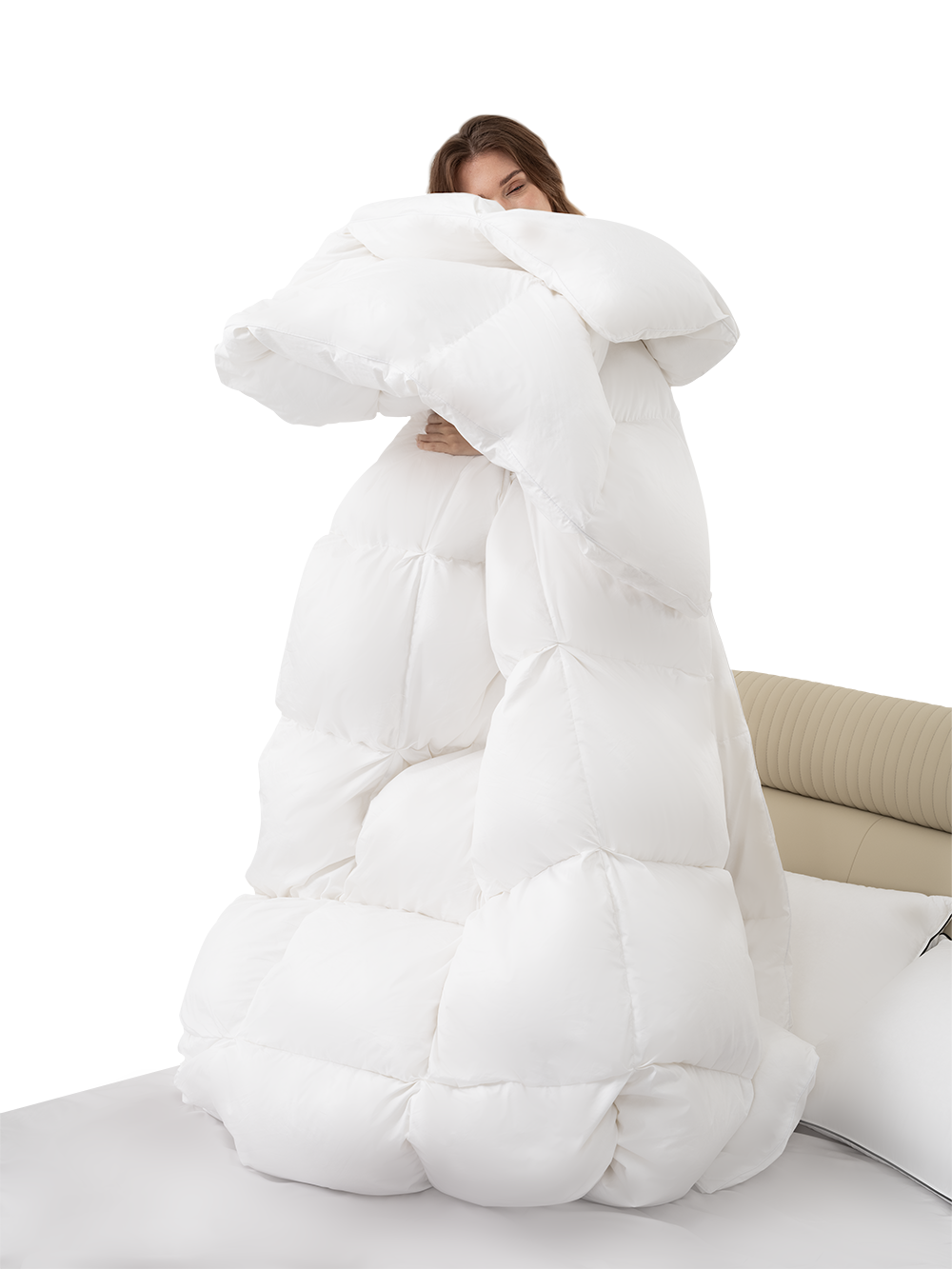 95%含绒量,750+蓬松度,1000+高清洁度,采用2CM扭花立衬+3D立体绗缝结构睡感蓬松,温暖如影随形,如漂浮云端